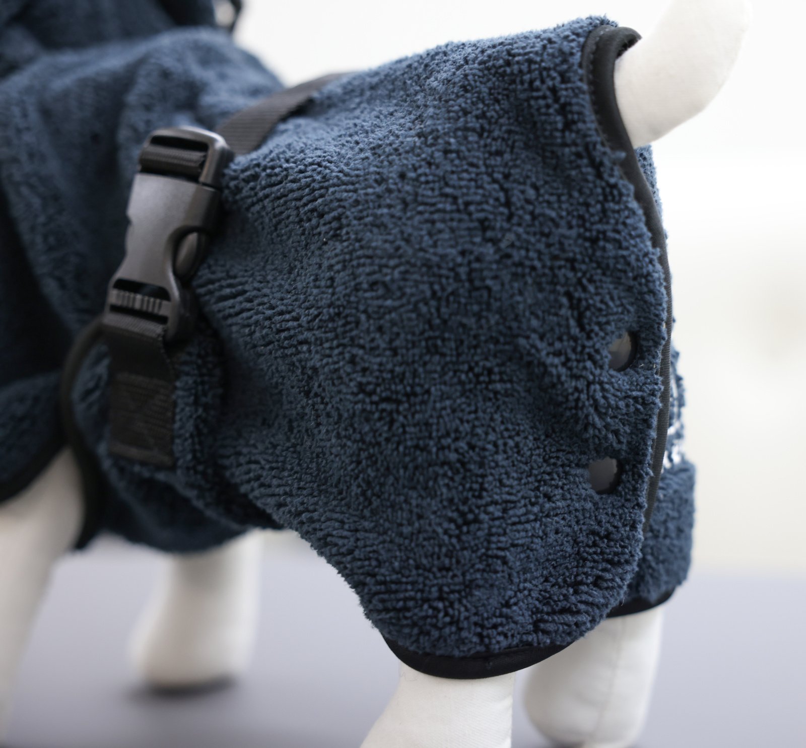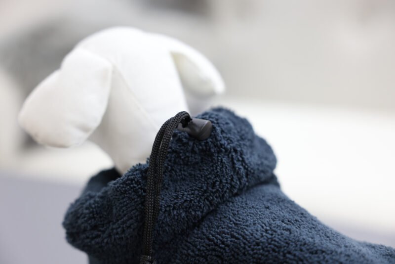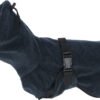 for quick putting-on after walks or bathing, wicks moisture away from the dog and provides warmth, large collar opening adjustable with drawstring, wide chest strap, infinitely adjustable by means of belly strap, super absorbent and quick-drying, high water absorption capacity due to absorbent terylene fibres, buttons on the rod area for better fixation on the dog, made from microfibre material