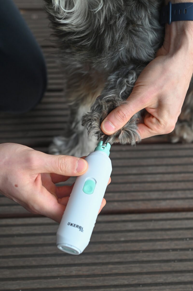suitable for dogs, cats and small animals, safety cap with 3 openings for small, medium and large claws, two speed settings for softer and harder claws, battery-operated with 3.7 V Li-ion battery 1200 mAh for up to 7 hours of working time, sharpening stone made of steel with diamond coating, easily rechargeable via the supplied USB cable, quiet and low-vibration for anxious animals