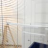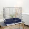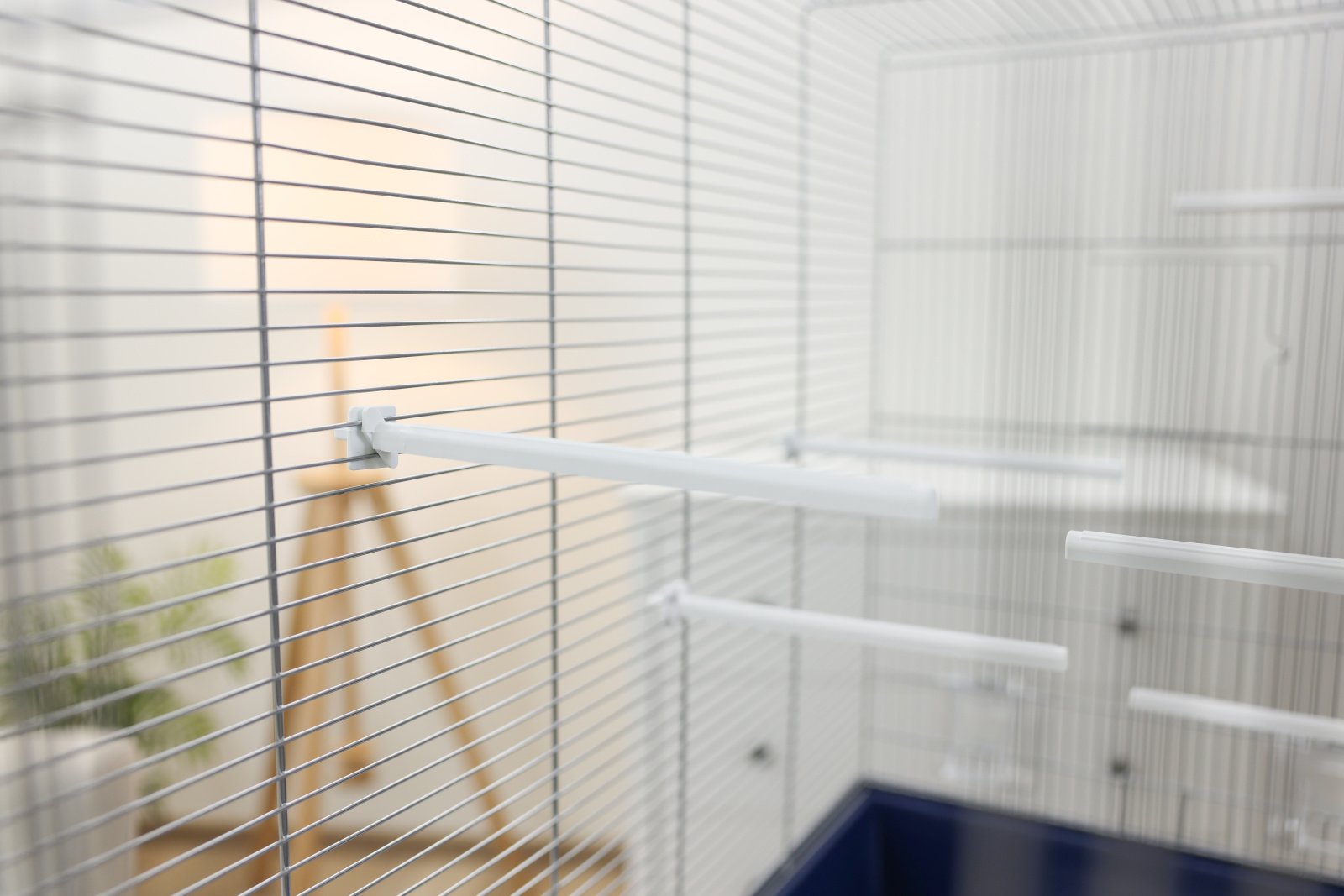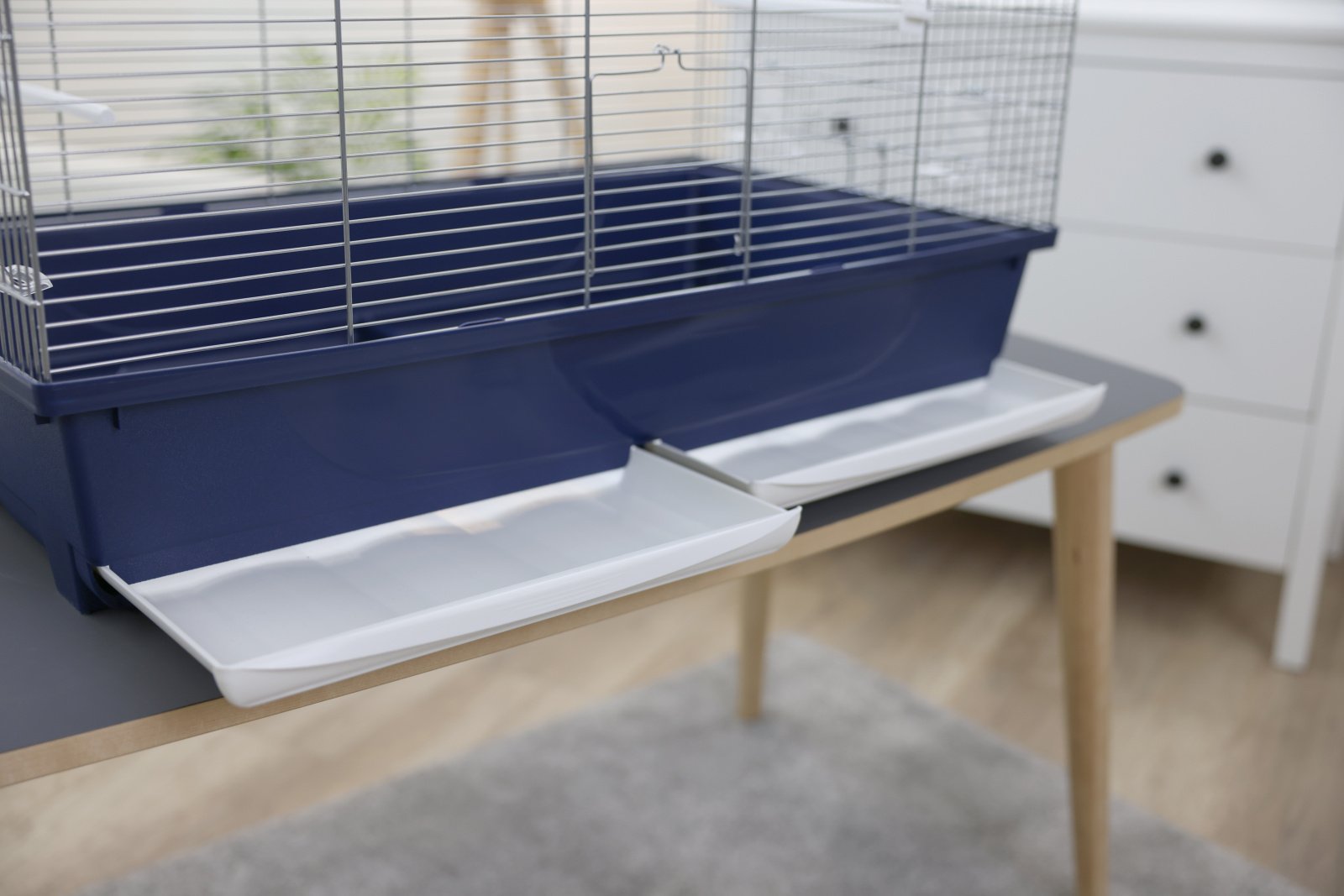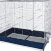 two-part pull-out cage base for quick and easy cleaning, incl. 8x perches and 4x bowls, 3 doors (12.5 x 12.5 cm) that can be opened separately, food and water bowls attached to the outside for easy filling, pull-out drawers make it easy to replace the bird sand