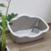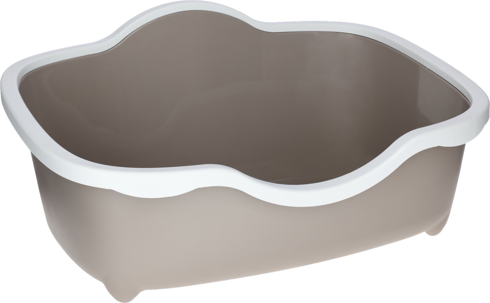 open square litter box, with extra-high back wall as splash protection, lowered entry (height 12 cm), with rim